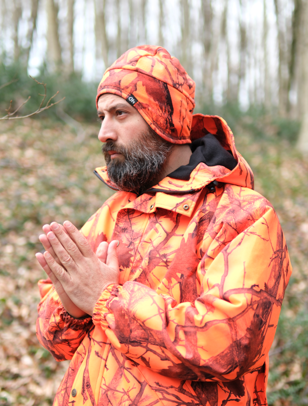 Made from 280 g/cm² polar fleece, this beanie is designed for reversible use, offering two color options: khaki and orange forest camo. Its standard size fits most and is ideal for daily wear. The shape is tailored to protect your ears from wind and cold.